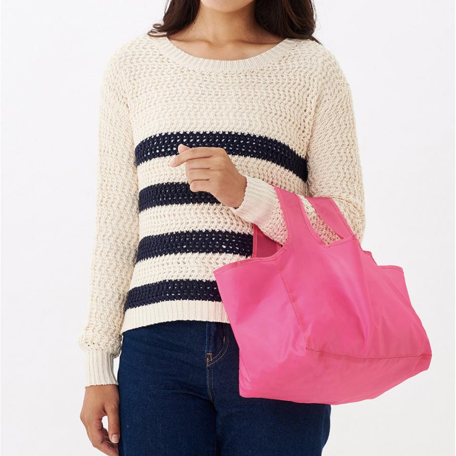 手の平サイズに折りたたんで持ち運べるので、コンビニなどちょっとしたお買い物にも便利です。
