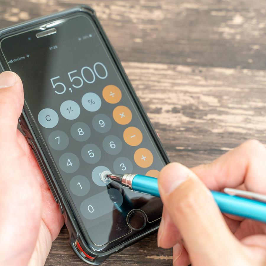 ディスク部分が可動式なため、画面に当たる面積をしっかりと確保。透明なのでペン先の文字やイラストもよく見える新しいタイプのタッチペンです。