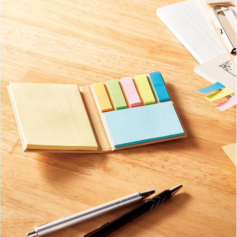 カバーに再生紙を利用した環境にやさしい付箋セット。