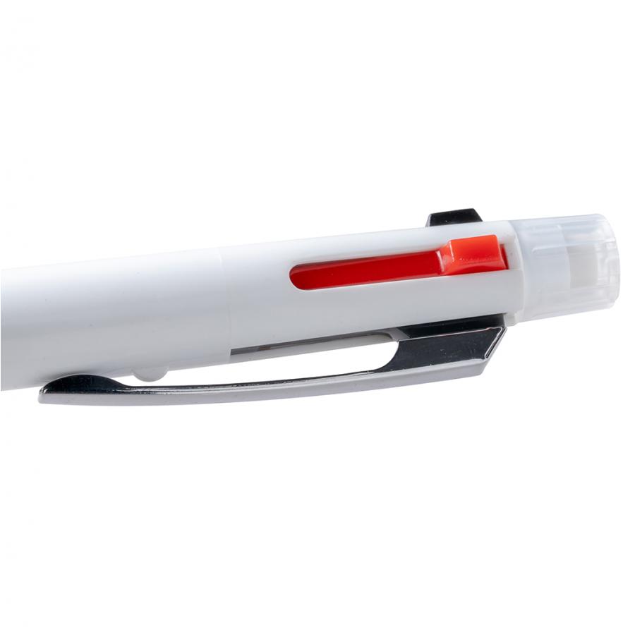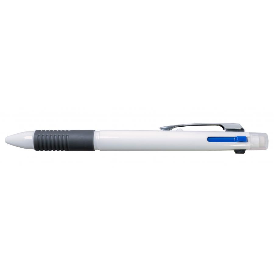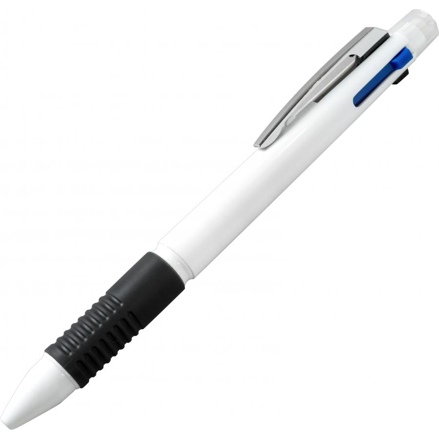 黒ペン、赤ペン、青ペン、シャープペンが付いた多機能な筆記具。