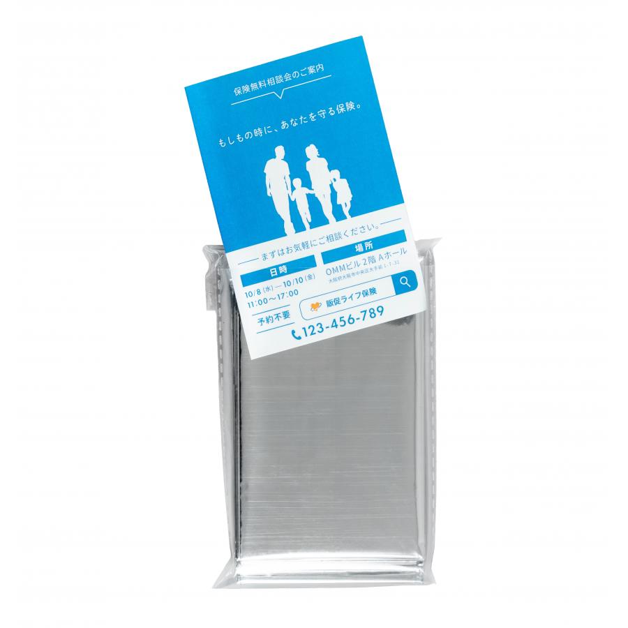 ラベルを封入できる外ポケット付きパッケージだから、オリジナルラベルによる名入れも可能です。また、名刺を入れてご挨拶粗品にすることもおすすめです。