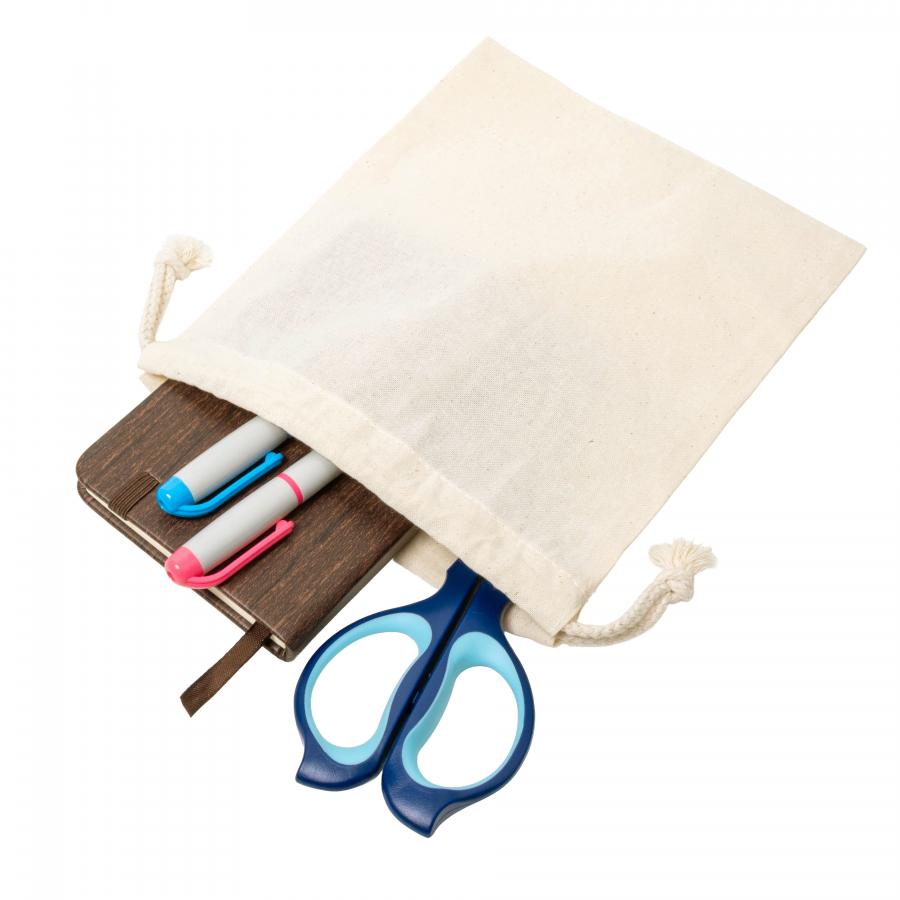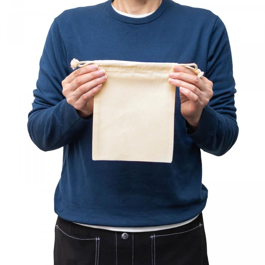 再生コットンを使用した環境にやさしい巾着袋。