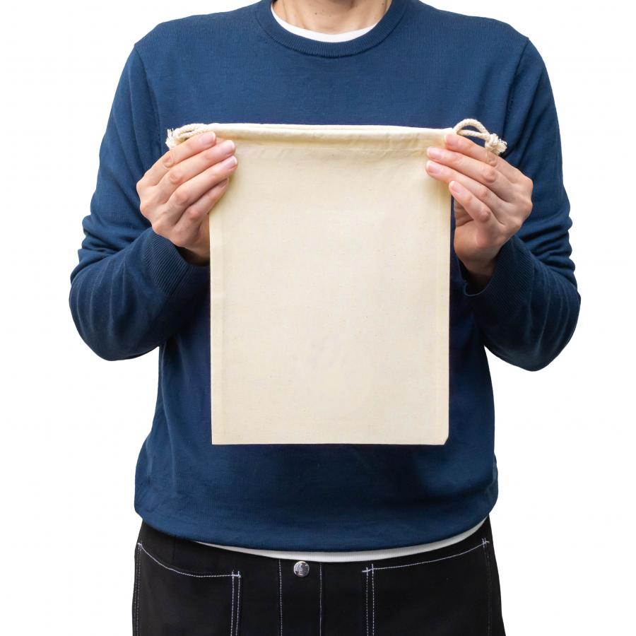 再生コットンを使用した環境にやさしい巾着袋。