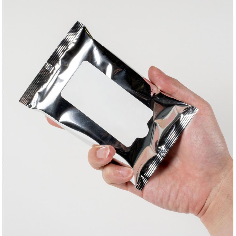 除菌効果の高いウェットティッシュを採用しており、パッケージには防湿性の高いアルミ蒸着フィルムを使用しているので、製造から5年間の安定した品質保証をいたします。